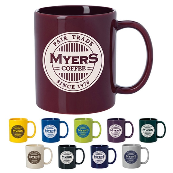 This dishwasher-safe ceramic mug has a colorful glossy finish and an 11 oz. capacity. Perfect for your morning cup of Joe!